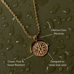 The sun pendant symbolizes positivity, vitality, and energy, making it the perfect accessory to brighten up any outfit and because it's 18k gold plated, you will never have to take it off!