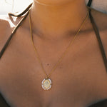 Featuring a Virgin Mary pendant surrounded by genuine mini freshwater pearls, the Grace Necklace is a timeless symbol of protection and peace, delicate, golden, and full of quiet strength.
