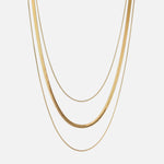 This triple layered 18K gold plated necklace offers three unique looks in one. With a sleek, elegant design, this 3 in 1 necklace is perfect for any occasion. Its 18K gold plating adds extra shine and sophistication and its triple layers provide a chic, layered look.