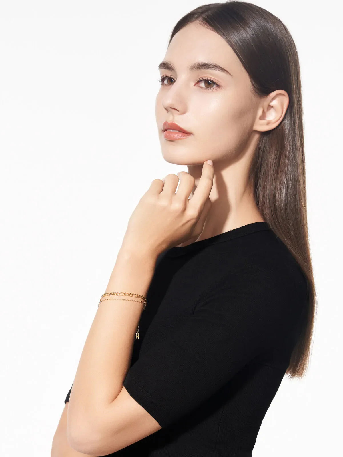 18k gold plating on surgical steel. Engineered to stay brilliant, always.