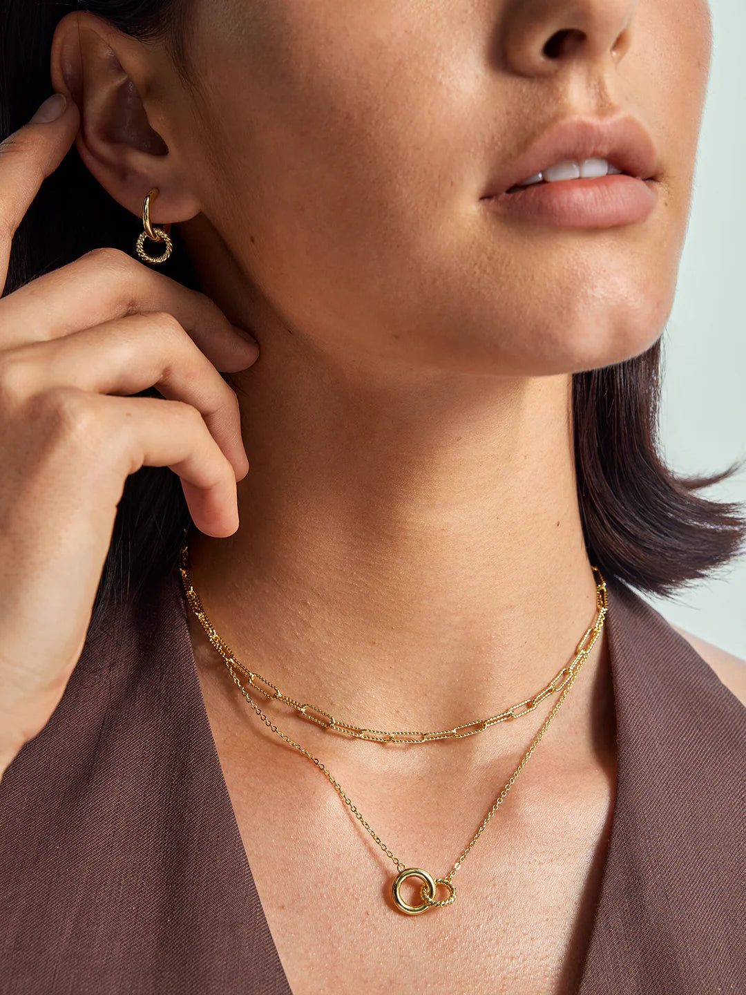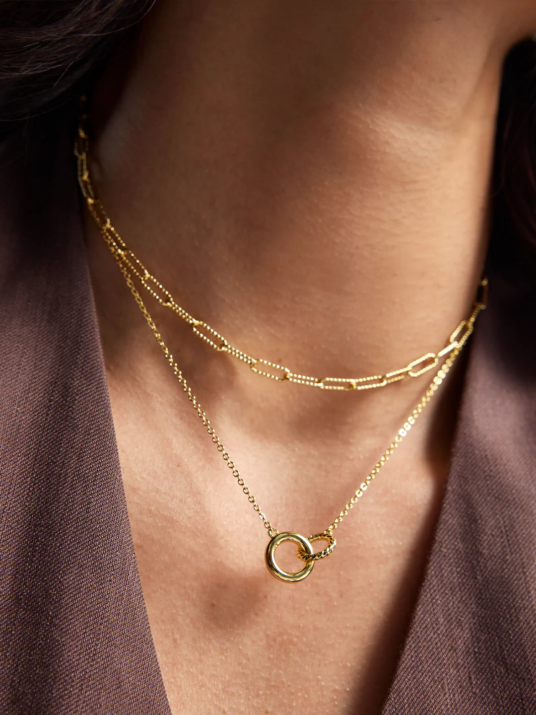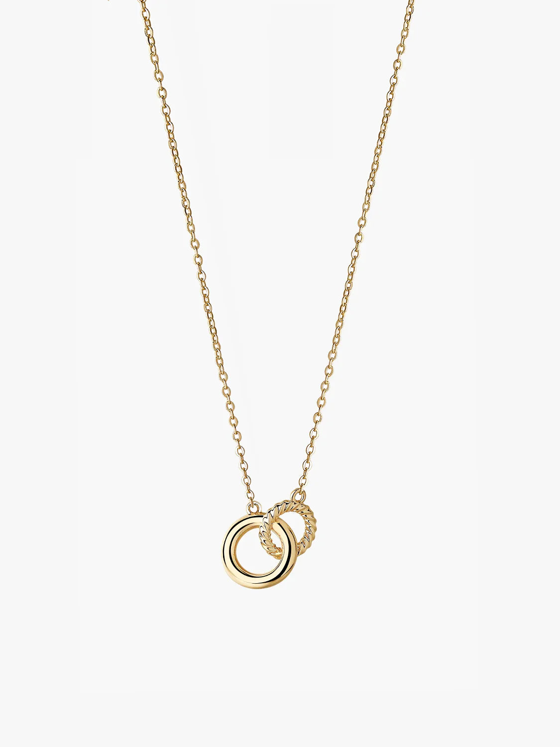 Add some elegance to your neck collection with our Classical Round Pendant Necklace. Created with precision and coated in 18K gold, this delicate accessory pairs two rings with different finishes. The interlocking circles represent the unbreakable bonds of love and friendship, ensuring that this timeless piece will never go out of style. Wear it to add shine and personal meaning to any outfit.