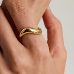 This ring features flowing wave curves that embody intentional movement. Embrace the beauty of this design and its smooth dome shape.