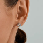 These Double Circle Half Pave Stud Earrings make a great present for either yourself or someone special, as they represent the concepts of love and unity through their interlocking circles. They are small, shiny, and timeless, adding a touch of elegance to any outfit you wear them with.