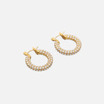 The sparkling Gleam Earrings are a perfect addition to any outfit. Featuring a delicate hoop design, they are encrusted with dazzling CZ diamonds that will catch the light and shine with every movement. The perfect way to add a touch of glamour and sophistication to any look.
