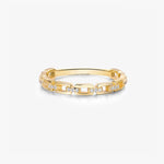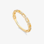 The Rectangle Link Delicate Ring is 18k gold plated rectangular chain link band ring with pavé diamonds set in each connecting link and a flat base shank for comfort. Handcrafted in 18k gold vermeil with cubic zirconia crystals.