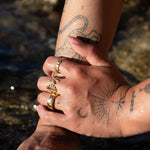 Marina is a captivating ring that beautifully captures the essence of the ocean with its starfish and scallop shell design. Crafted in gold, this ring is perfect for anyone who cherishes the serene beauty of the sea.