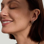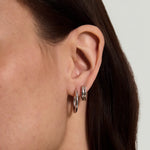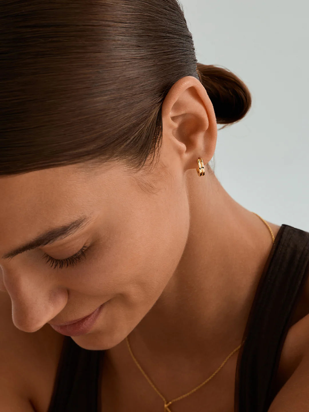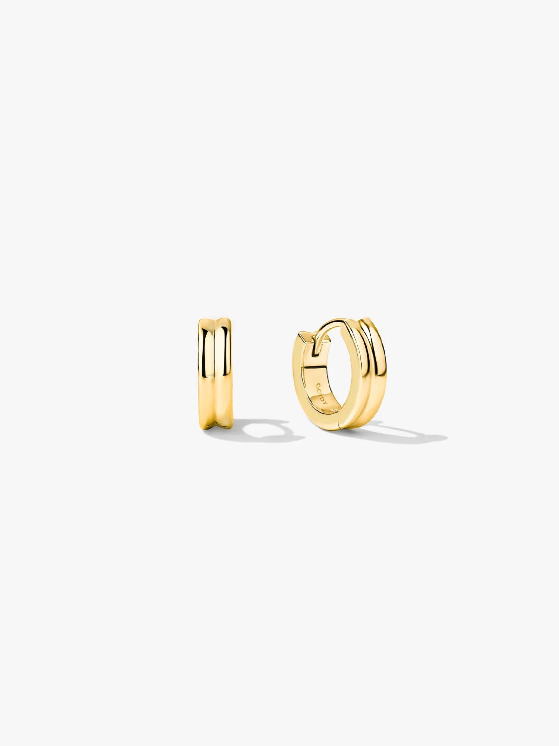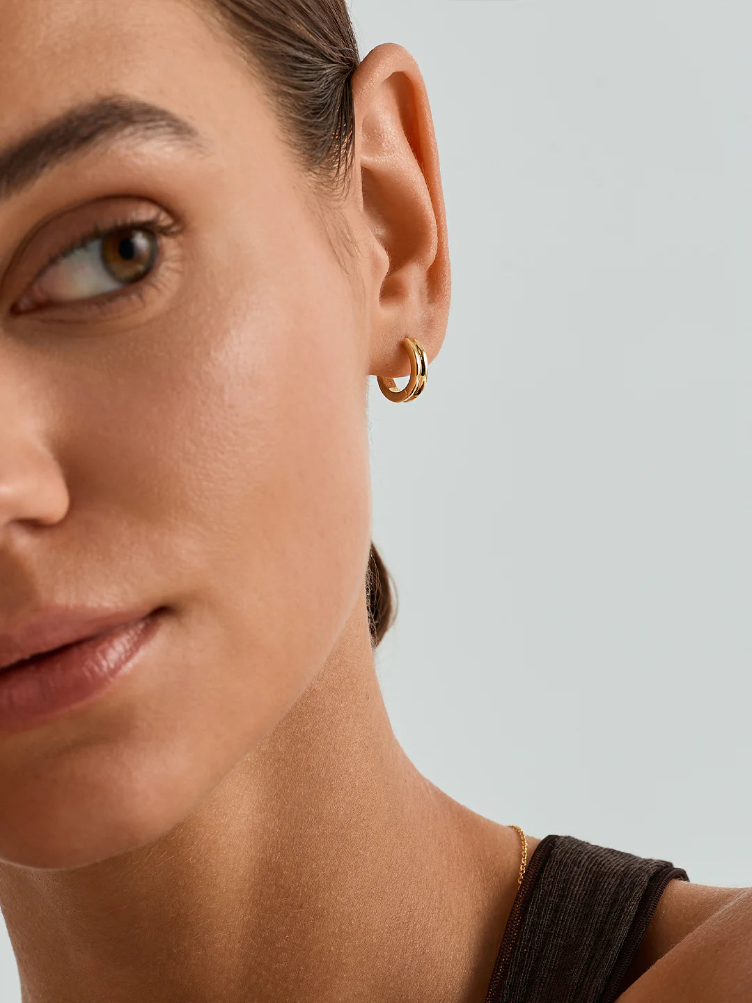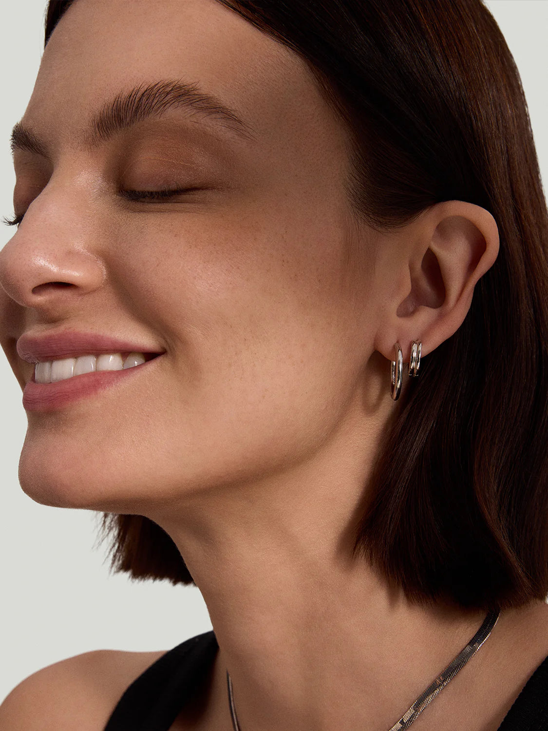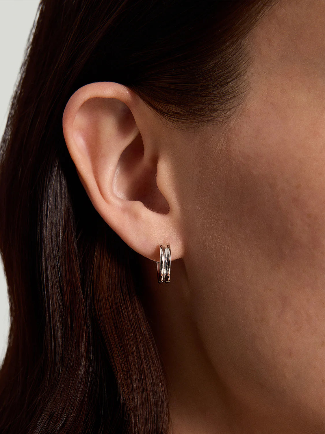 Introducing the beloved silver huggie hoop earrings that will become your go-to accessory. These earrings feature a stylish double-hoop design, adding a distinctive touch while maintaining a minimalist aesthetic. To create a simple everyday stack, consider combining them with our silver Mini Huggie Hoop earrings.
