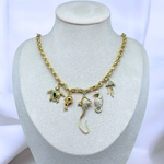 A stunning gold-plated chain necklace adorned with intricately designed ocean-themed charms, including a turtle, dolphin, manta ray, seahorse, and jellyfish, perfect for adding a whimsical marine touch to any outfit.
