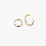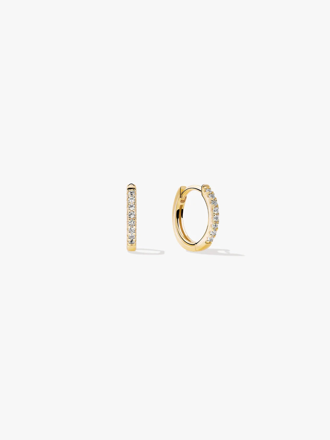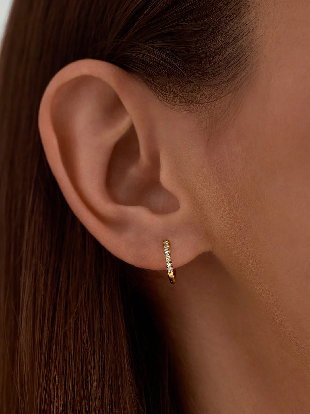 These delicate huggies, set with pavé lab grown white sapphires, create a stacked look with effortless elegance. Pair them with our sapphire huggie or charm for an extra touch of sparkle