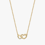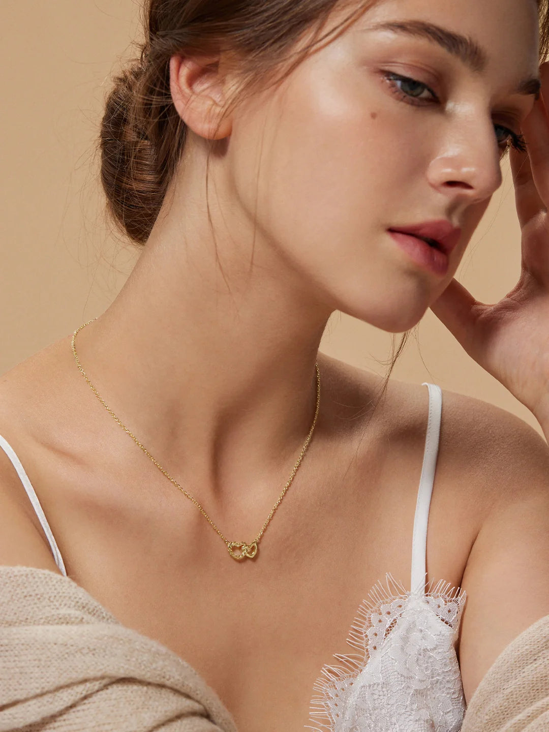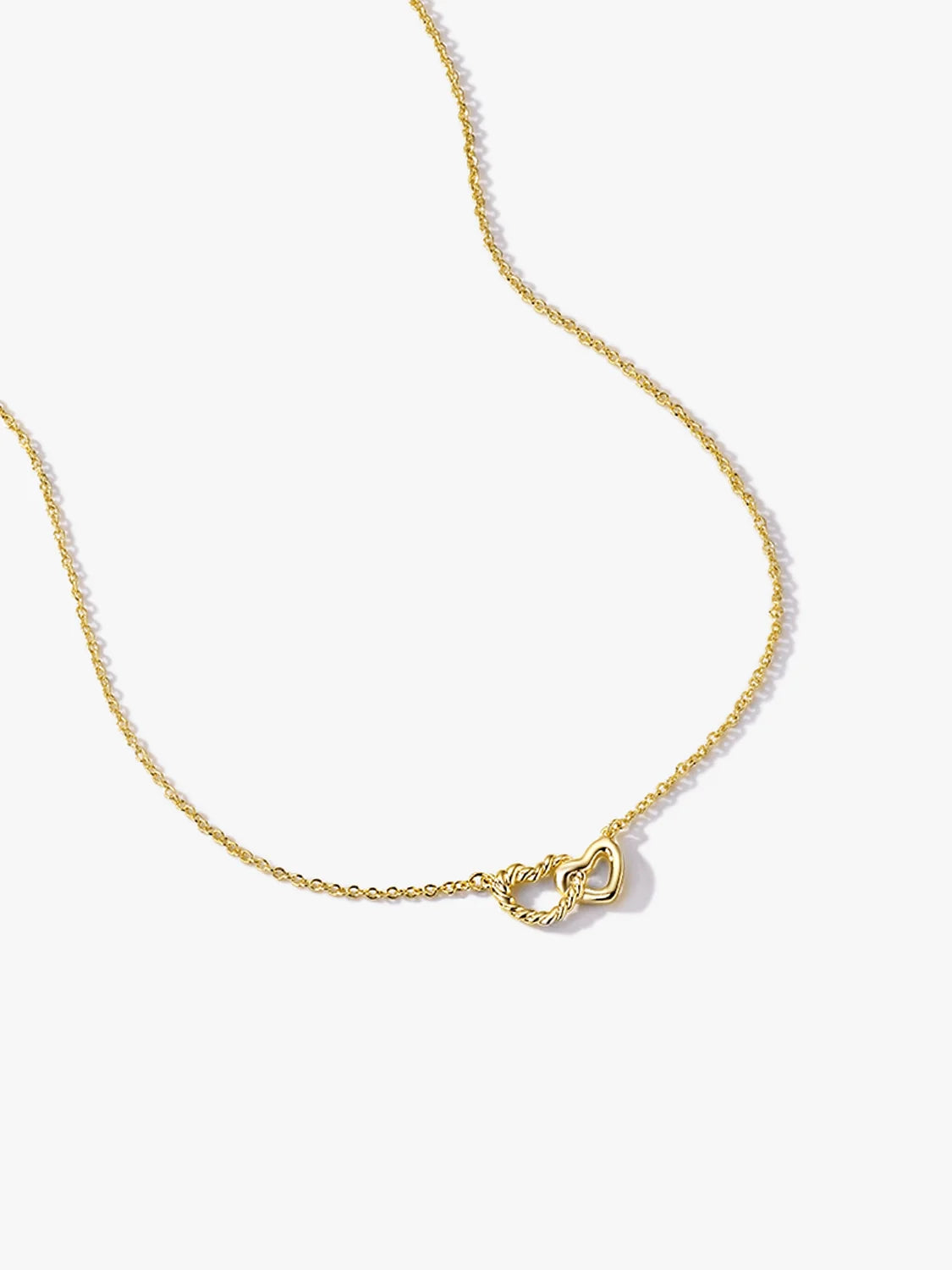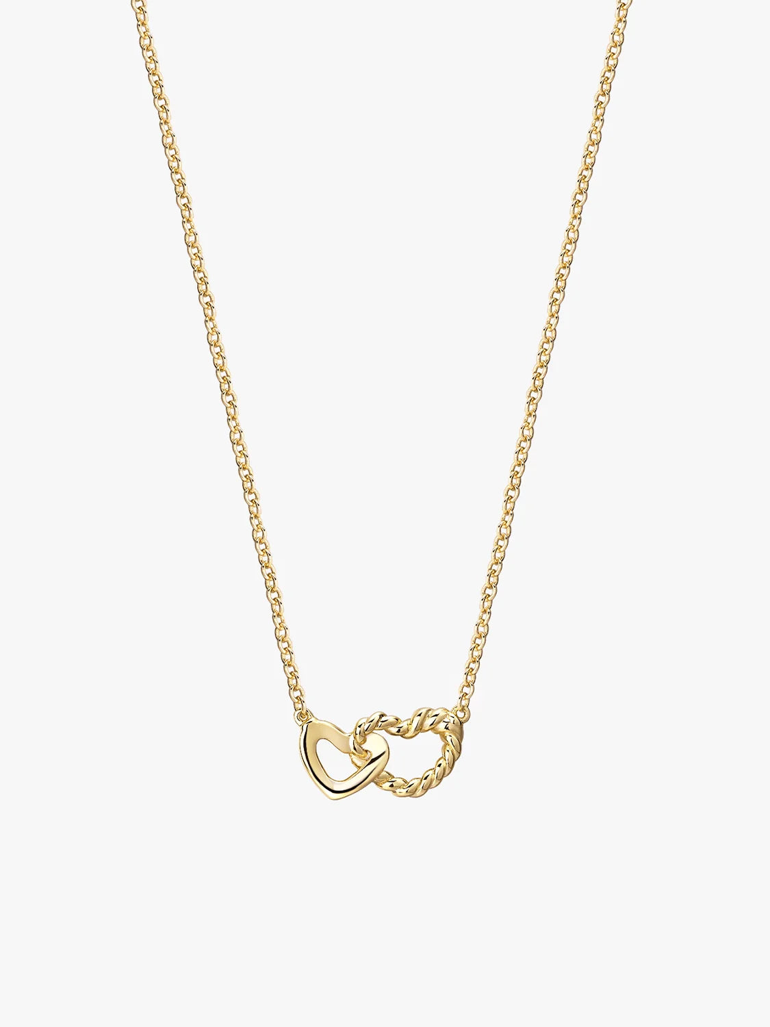 The Rope Interlocking Heart Pendant Necklace features a large twisted rope heart interlocked with a small smooth heart, symbolizing the eternal and strong love between lovers, relatives, and friends. It's a perfect gift to give to those you love the most and is also suitable for collection and layering with other pieces in the collection.