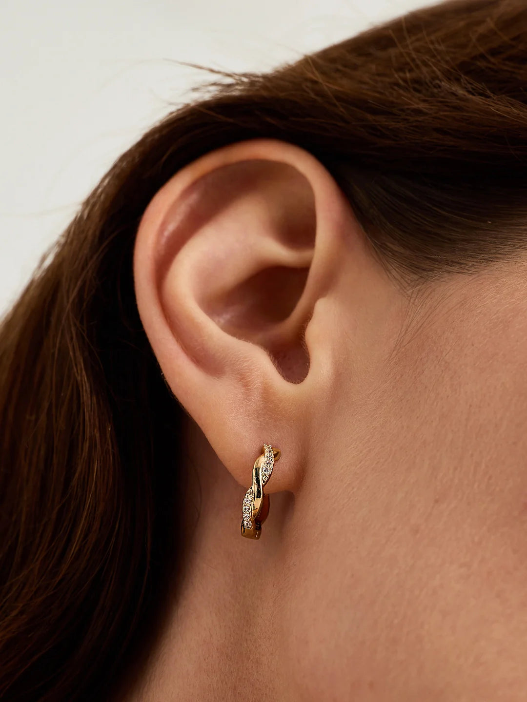 These hoop earrings with cubic zirconia twist design are both chic and stylish, making them a versatile accessory for any occasion. They are sure to complement any fashion choice.