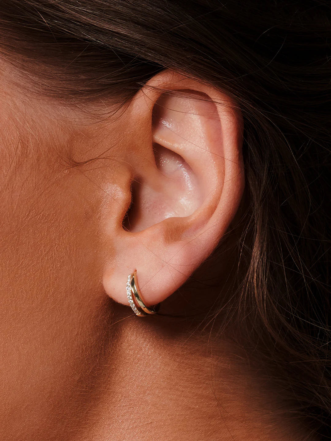 Enhance the shine of your ear stack by doubling it up with our Double Semicircle Huggie Earrings. Featuring a delicate design and dazzling cubic zirconia, these hoops are perfect for transitioning from day to evening. Whether worn individually or layered, these earrings are sure to impress.