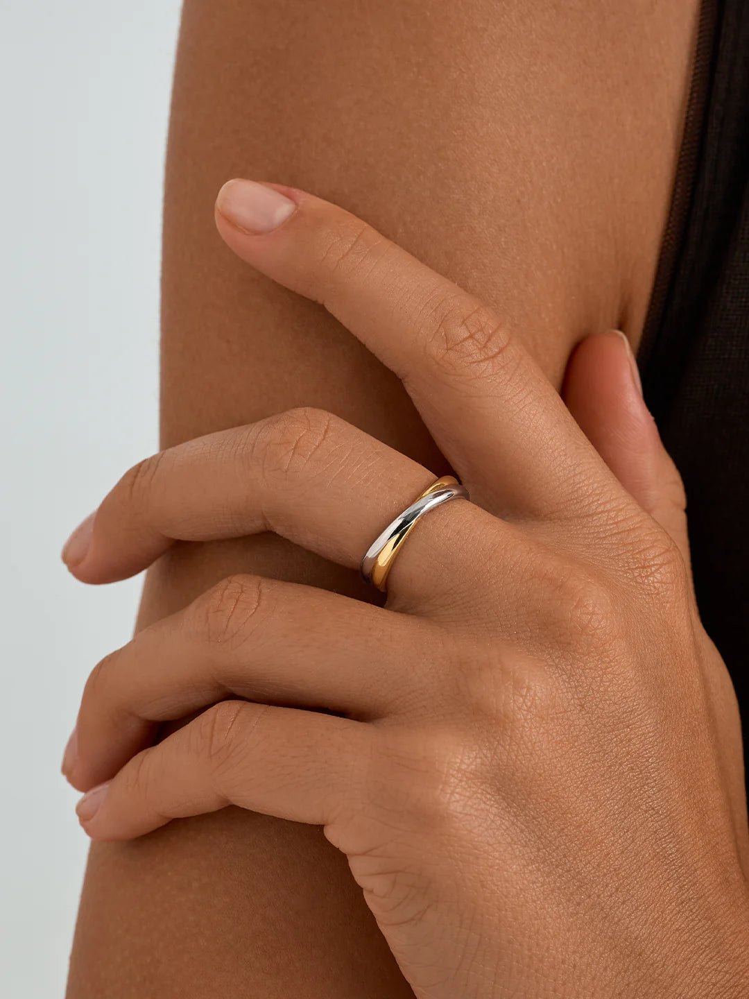 This Mixed Entwine Ring features a bold, intertwined design, seamlessly blending the elegance of gold with the striking contrast of silver. It delivers a statement look that’s effortlessly chic. Pair it with designs from our mixed-metal collection to elevate your style. Redefine classic elegance with this eye-catching, mixed-metal beauty.