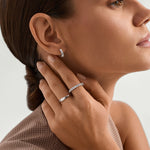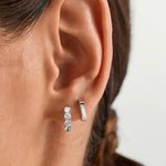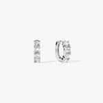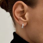 These dainty huggies feature lab-grown round white sapphires. A perfect touch of everyday sparkle in a sleek, wearable design. They're a go-to for effortless elegance.