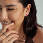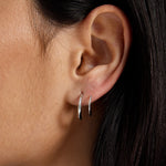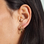 Maximize your style with minimal hardware by wearing our Double Hoops Earrings that wrap around for a distinctive appearance, requiring only a single ear piercing. In response to the high demand for our half pave double hoops, we have released our new line of double hoops.