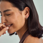 Maximize your style with minimal hardware by wearing our Double Hoops Earrings that wrap around for a distinctive appearance, requiring only a single ear piercing. In response to the high demand for our half pave double hoops, we have released our new line of double hoops.