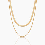 Sleek, minimal and magnetic. This layered duo blends two snake chains—each smooth, glistening, and ultra-refined. It’s the kind of piece you wear on repeat: subtle enough for everyday, bold enough to stand alone. A statement in simplicity.