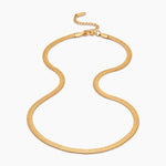A modern classic you'll reach for every day. This gold snake chain lays flat against the skin, catching the light with every move. Effortlessly elegant on its own or layered with your favorite pieces, it's crafted to elevate even the simplest outfit. Water-resistant, tarnish-free, and endlessly wearable.