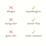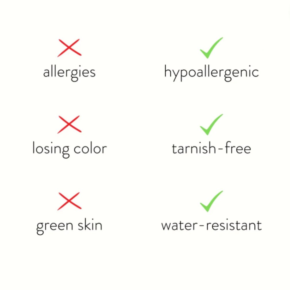 Sensitive skin approved. No nickel, no irritation, just comfort.