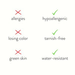 Sensitive skin approved. No nickel, no irritation, just comfort.