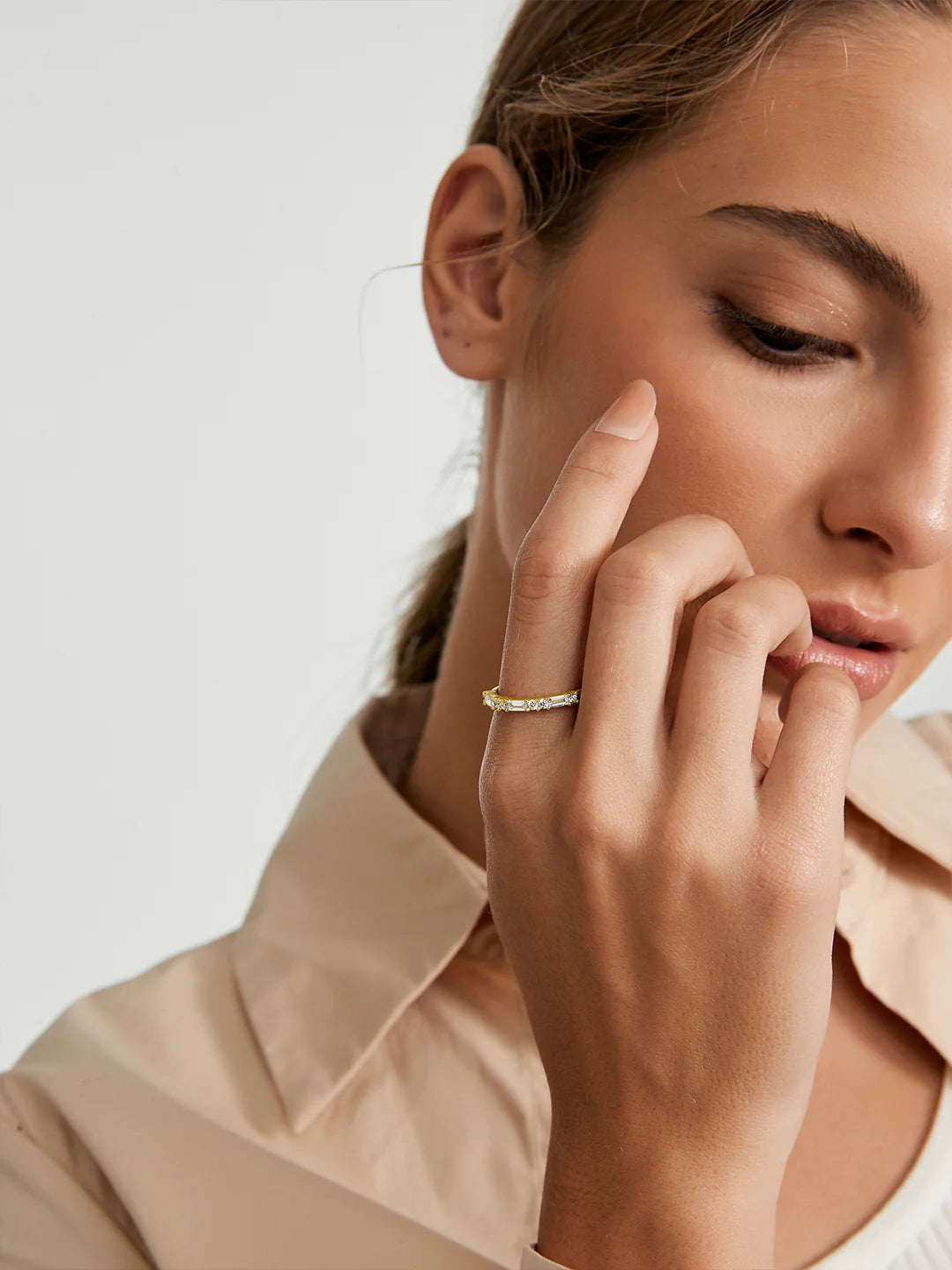 Made of two signature diamond cuts, baguette and brilliant, so you don’t have to decide on one. You can have it all. A row of baguette diamonds meets our brilliant diamonds for a pattern so classic. Handcrafted in 18k gold vermeil