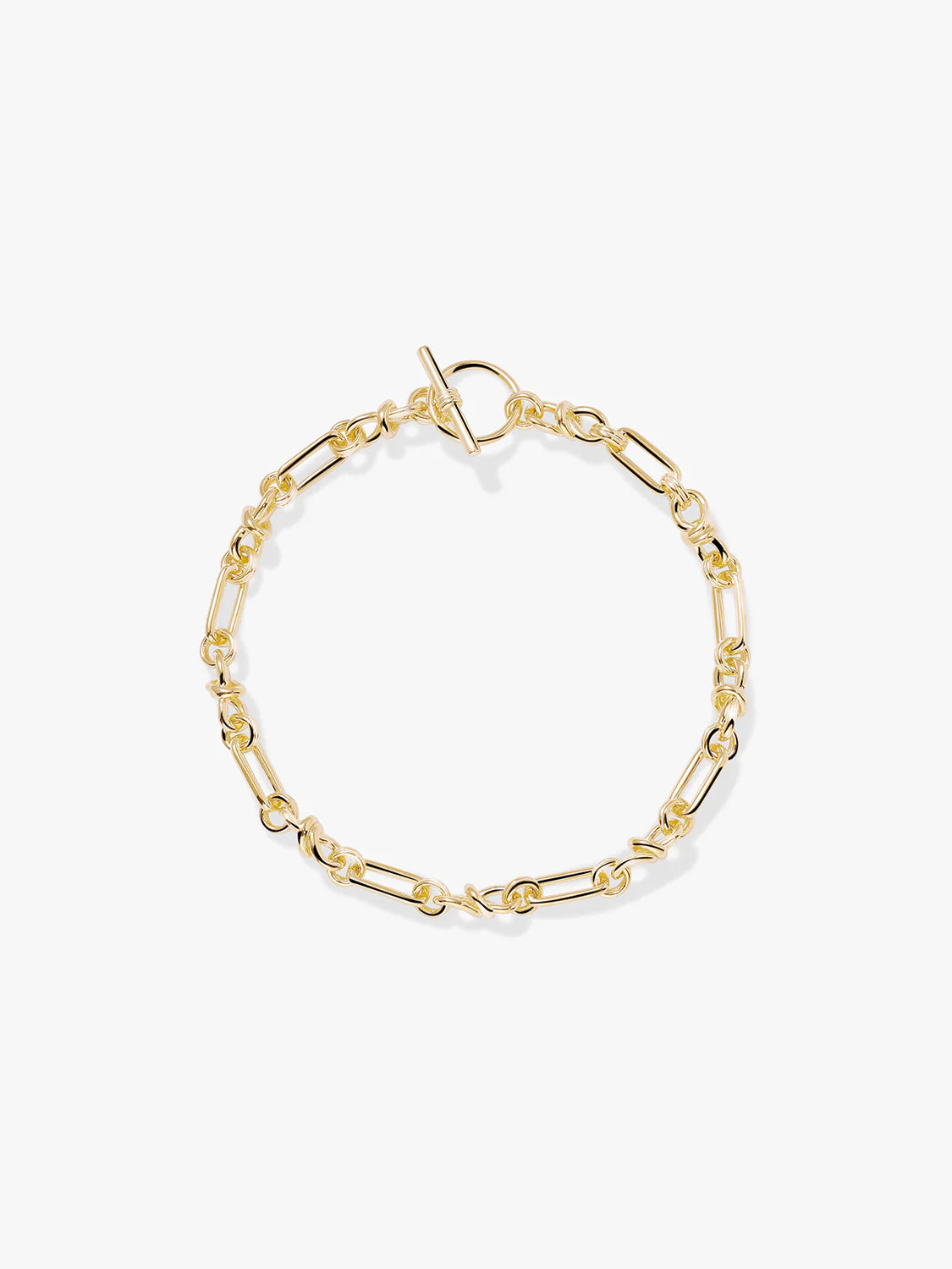 This chain bracelet features a beautifully crafted knot seamlessly integrated into a delicate chain, symbolizing unity and strength. Wear it alone or pair it with our chain necklace to complete your look.