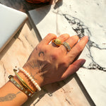 This stunning 18k gold plated Nova Ring is a perfect addition to any jewellery collection. Its sparkly and eye-catching design is sure to make a statement, while its simple elegance ensures it will never go out of style. Crafted with care and attention to detail, this ring is sure to be a cherished accessory for years to come.